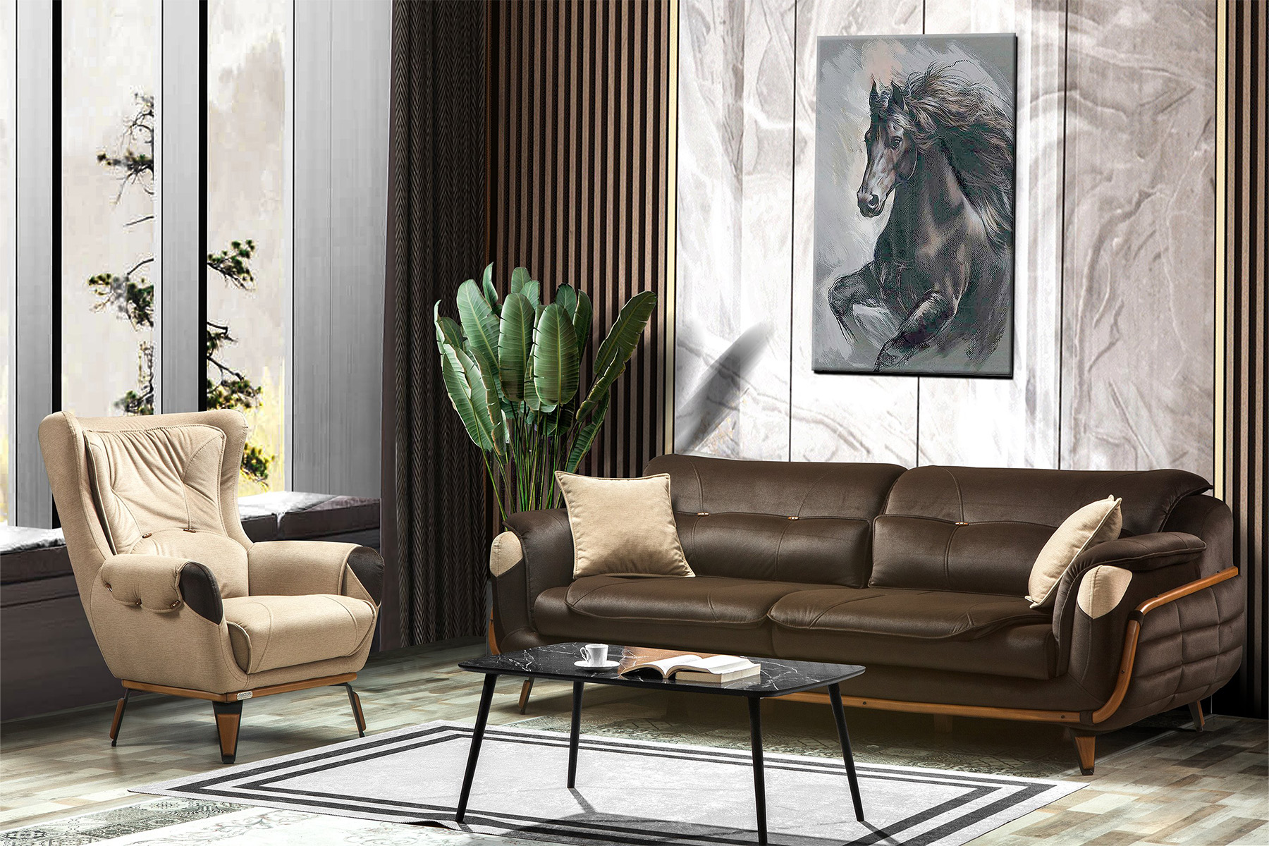 Bahar Koltuk Takımı Yatak Fonksiyonlu 3+3+1